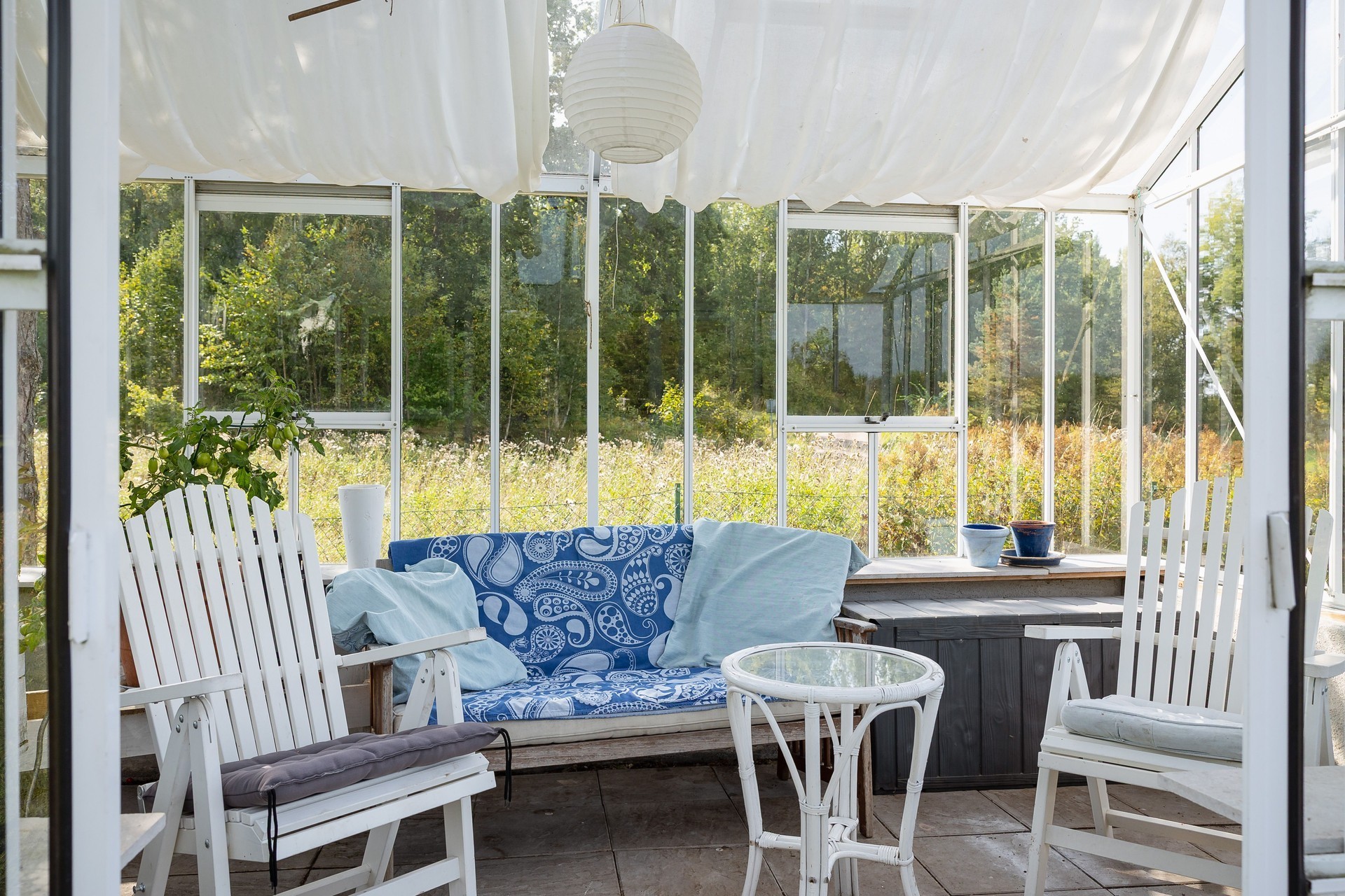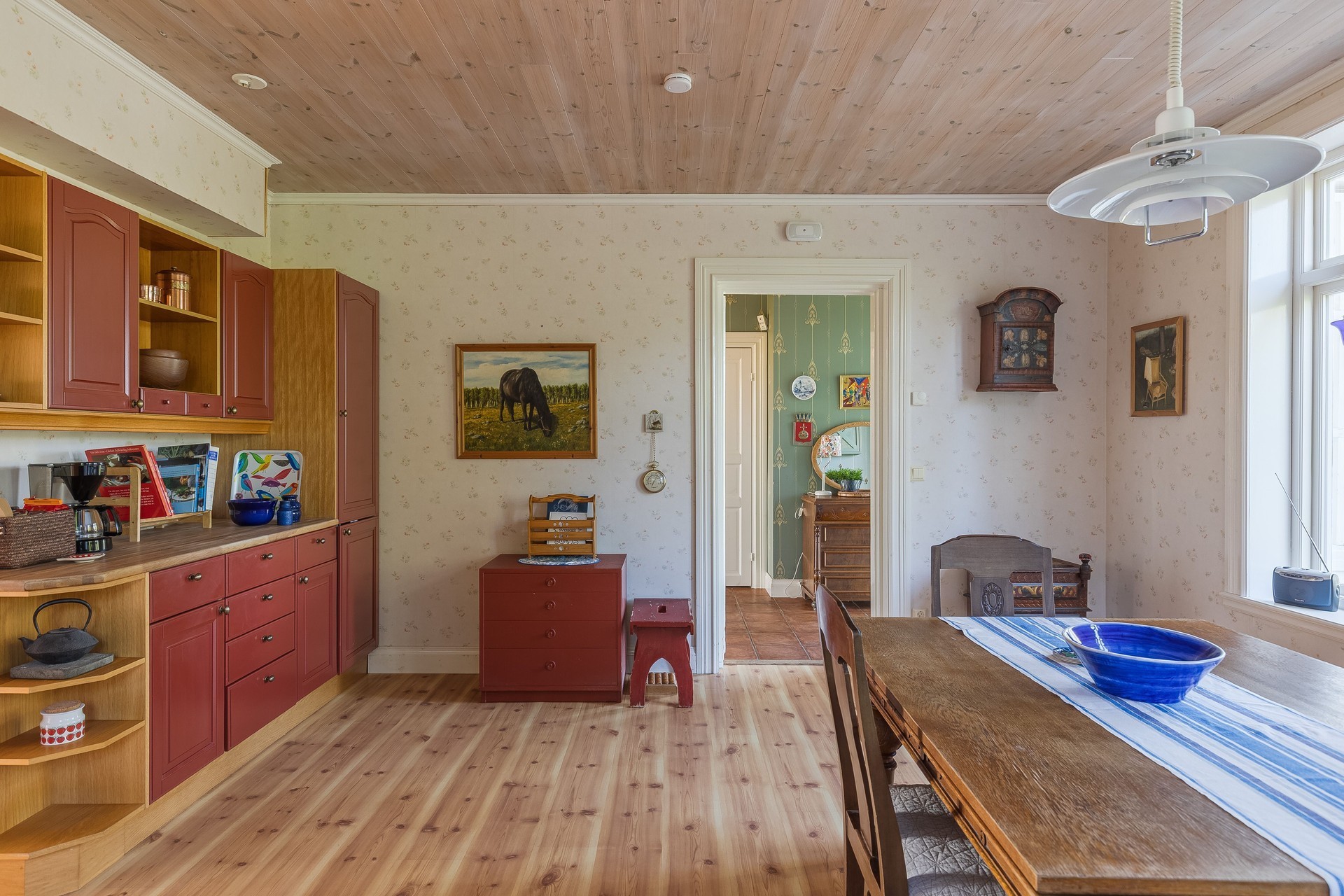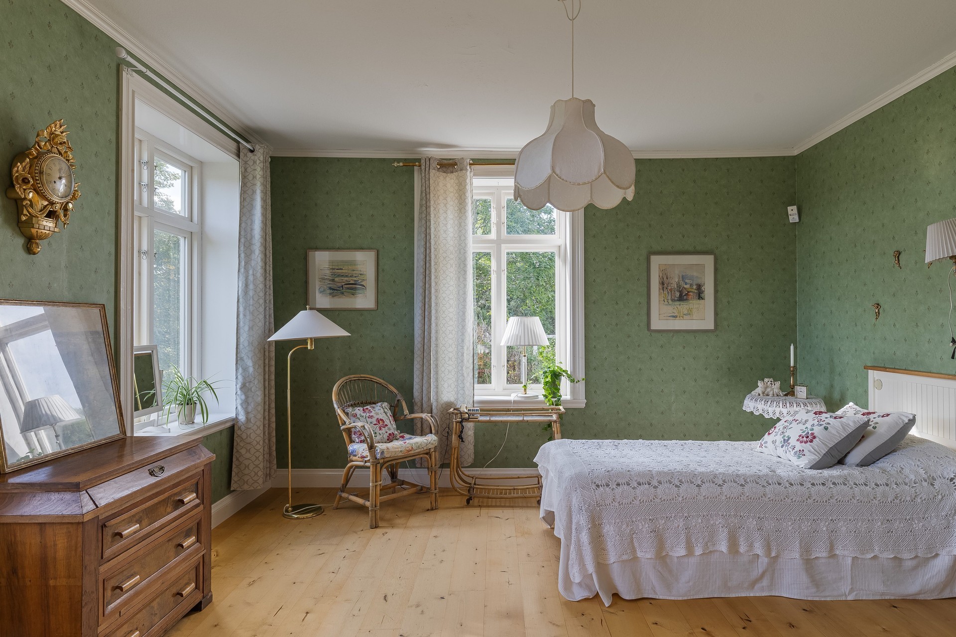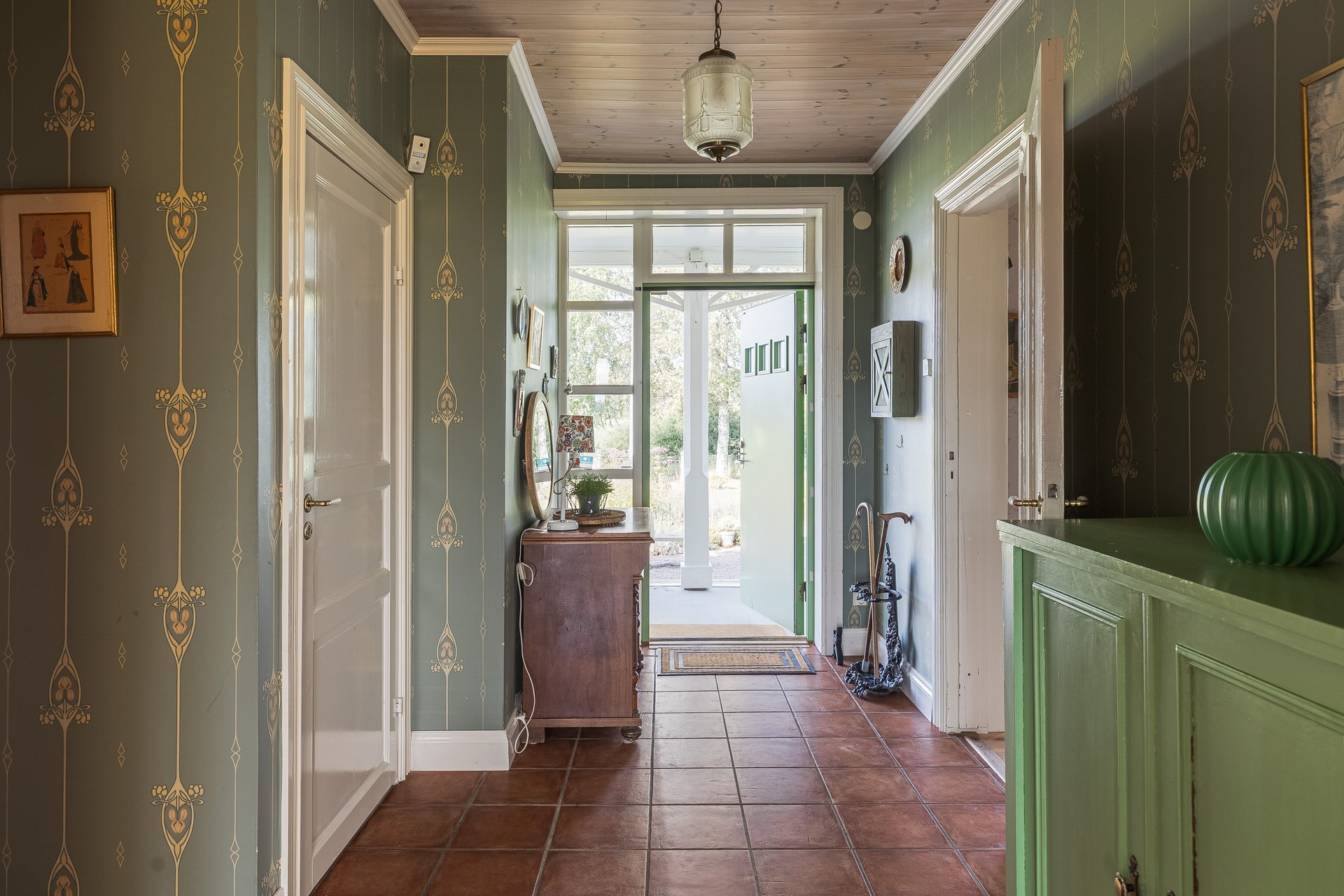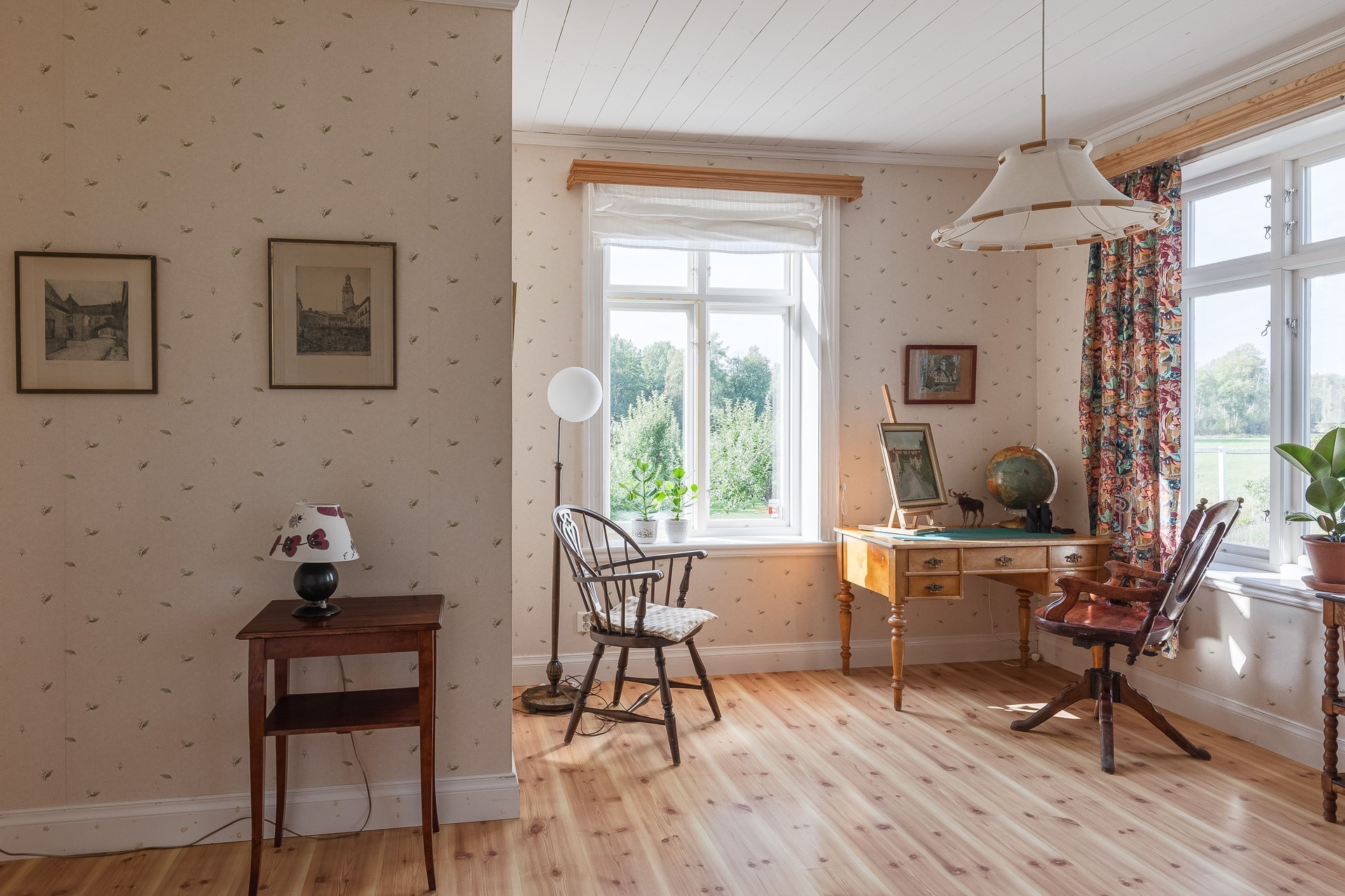 Bostaden är inredd som två separata lägenheter, en på varje våningsplan. Lägenheterna är helt separerade och båda är fullt inredda. Lägenhet entréplan: Nedre lägenheten är cirka 130 m² boarea fördelat på fyra rum och kök. Köket är fullt utrustat och har gott om plats för matbord. Vardagsrummet har mycket stora fönsterytor som ger en fin utsikt över gårdens marker. På bottenvåningen finns ytterligare tre rum varav två är lämpliga som sovrum och ett som kontor/matrum. Flera av rummen har fina kakelugnar bevarade (f.n. ej godkända att elda i). Ett av rummen har en vedspis som går bra att nyttja. Lägenheten på nedre botten har två badrum som båda har WC samt dusch/duschkabin. Dessutom en separat groventré samt tvättstuga. Samtliga rum på bottenvåningen är ljusa och rymliga, takhöjden är väl tilltagen och golvvärmen gör inomhusklimatet behagligt. Lägenhet övre plan: Övre lägenheten är cirka 100 m² boarea fördelat på två rum och kök. Lägenheten på övre plan har en stor rymd, gott om fönsterytor samt golvvärme för ett behagligt inomhusklimat. Entrén är på bottenvåningen. Planlösningen på övre plan är relativt öppen med stort vardagsrum/allrum med fönster åt två håll, öppet upp till nock samt utgång till balkongen. Balkongen har en fin utsikt över trädgården och bostadens entré. Köket är något mindre än det på bottenvåningen, men fortfarande fullt utrustat och gott om plats för matbord. Köket är renoverat 2021. Invid matplatsen finns även ett mindre rum som går att nyttja som stort förråd eller litet kontor. Övre lägenheten har ett sovrum med stor klädkammare. Detta ligger i omedelbar anslutning till badrum och tvättstuga som båda är rymliga och fint inredda. Badrummet renoverades år 2012. Under ungefär halva huset finns en källare som man når utifrån. Källaren inrymmer generösa förrådsutrymmen samt "pannrum" med plats för värmepump, vattenpump etc. Då marken bakom huset är lägre än på framsidan är källarfönstren relativt stora vilket gör att källaren är ljus. Dessutom är takhöjden i källaren god. Såväl tidigare som nuvarande ägare har lagt stort fokus på att sköta och utveckla trädgården på gården. Det finns massor av rabatter med mycket fina blommor som är väl genomtänkta så man får en vacker trädgård som blommar under stor del av året. Det finns dessutom en fin äppellund som innehåller många fina äppelträd av flera sorter. Det finns även ett fint iordninggjort växthus som mer är att likna vid ett mindre orangeri. För den som vill se mer bilder från gårdens trädgård och hur vackert den förändras under året har gården en egen Instagramsida; "smorkattenhagagard".