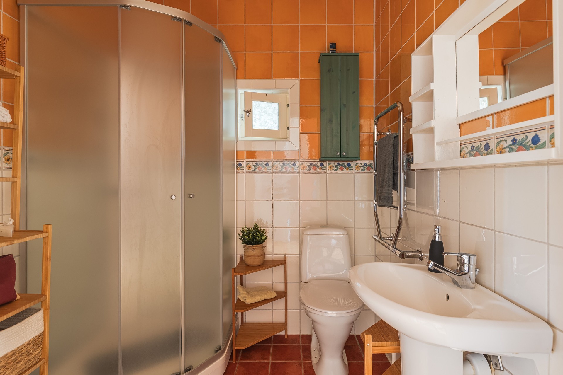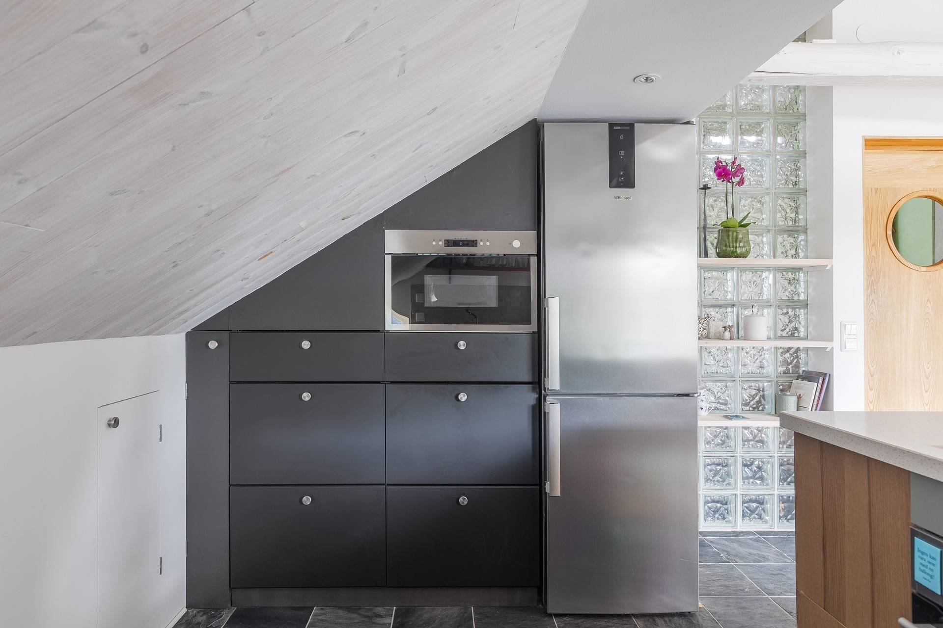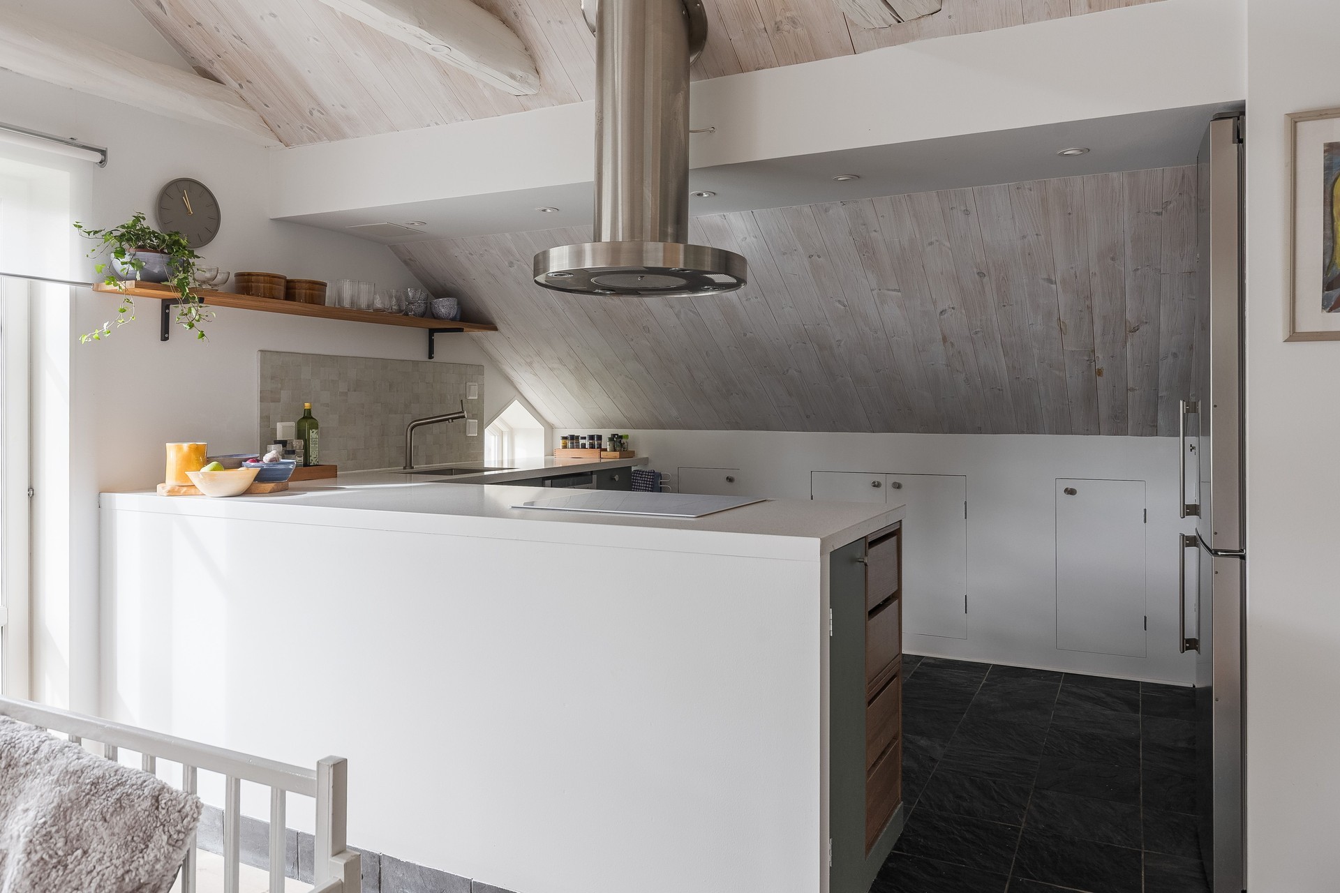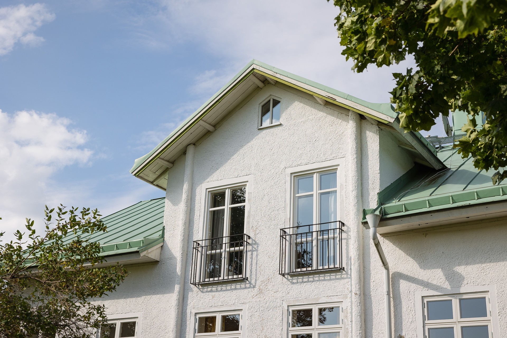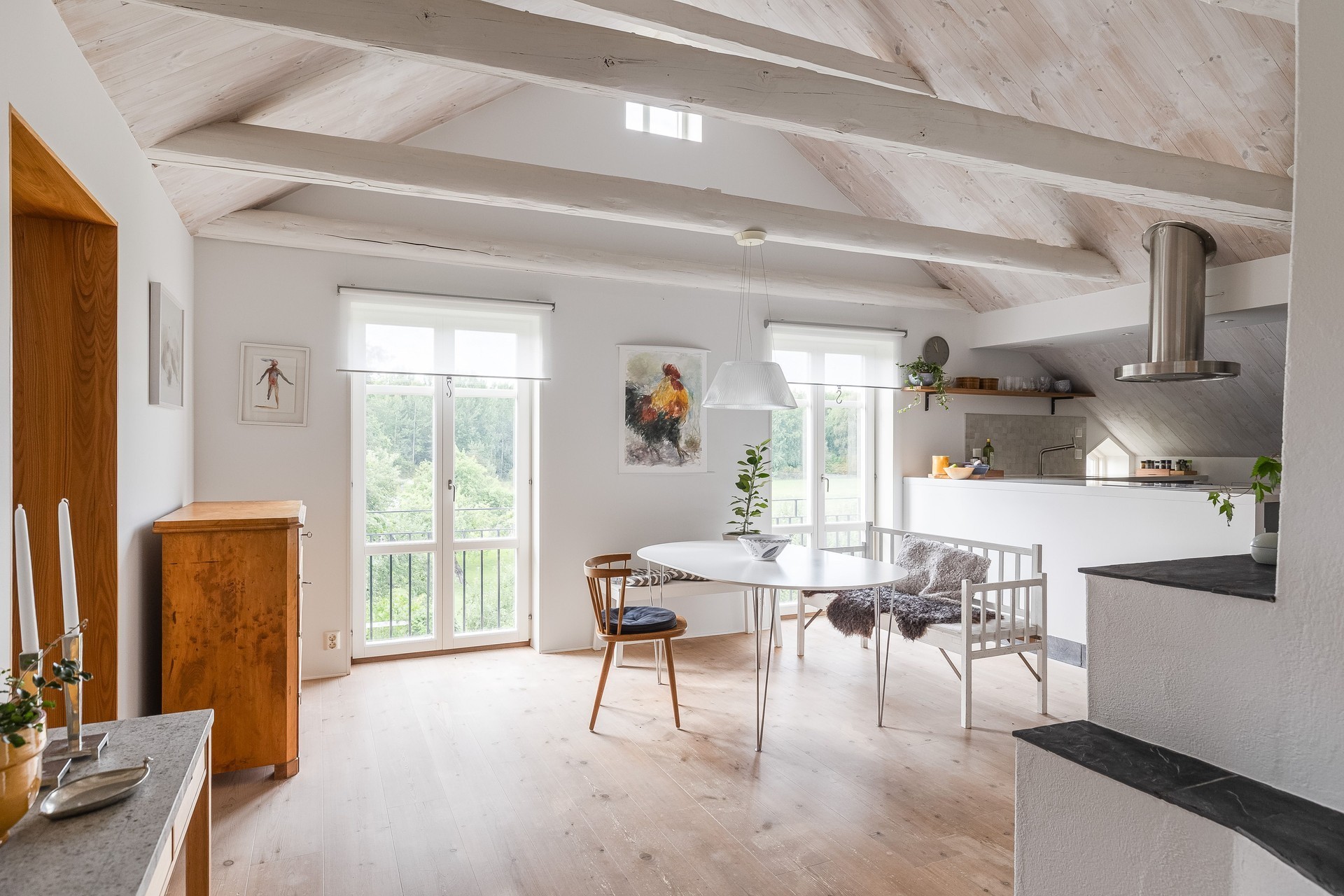 Bostaden är inredd som två separata lägenheter, en på varje våningsplan. Lägenheterna är helt separerade och båda är fullt inredda. Lägenhet entréplan: Nedre lägenheten är cirka 130 m² boarea fördelat på fyra rum och kök. Köket är fullt utrustat och har gott om plats för matbord. Vardagsrummet har mycket stora fönsterytor som ger en fin utsikt över gårdens marker. På bottenvåningen finns ytterligare tre rum varav två är lämpliga som sovrum och ett som kontor/matrum. Flera av rummen har fina kakelugnar bevarade (f.n. ej godkända att elda i). Ett av rummen har en vedspis som går bra att nyttja. Lägenheten på nedre botten har två badrum som båda har WC samt dusch/duschkabin. Dessutom en separat groventré samt tvättstuga. Samtliga rum på bottenvåningen är ljusa och rymliga, takhöjden är väl tilltagen och golvvärmen gör inomhusklimatet behagligt. Lägenhet övre plan: Övre lägenheten är cirka 100 m² boarea fördelat på två rum och kök. Lägenheten på övre plan har en stor rymd, gott om fönsterytor samt golvvärme för ett behagligt inomhusklimat. Entrén är på bottenvåningen. Planlösningen på övre plan är relativt öppen med stort vardagsrum/allrum med fönster åt två håll, öppet upp till nock samt utgång till balkongen. Balkongen har en fin utsikt över trädgården och bostadens entré. Köket är något mindre än det på bottenvåningen, men fortfarande fullt utrustat och gott om plats för matbord. Köket är renoverat 2021. Invid matplatsen finns även ett mindre rum som går att nyttja som stort förråd eller litet kontor. Övre lägenheten har ett sovrum med stor klädkammare. Detta ligger i omedelbar anslutning till badrum och tvättstuga som båda är rymliga och fint inredda. Badrummet renoverades år 2012. Under ungefär halva huset finns en källare som man når utifrån. Källaren inrymmer generösa förrådsutrymmen samt "pannrum" med plats för värmepump, vattenpump etc. Då marken bakom huset är lägre än på framsidan är källarfönstren relativt stora vilket gör att källaren är ljus. Dessutom är takhöjden i källaren god. Såväl tidigare som nuvarande ägare har lagt stort fokus på att sköta och utveckla trädgården på gården. Det finns massor av rabatter med mycket fina blommor som är väl genomtänkta så man får en vacker trädgård som blommar under stor del av året. Det finns dessutom en fin äppellund som innehåller många fina äppelträd av flera sorter. Det finns även ett fint iordninggjort växthus som mer är att likna vid ett mindre orangeri. För den som vill se mer bilder från gårdens trädgård och hur vackert den förändras under året har gården en egen Instagramsida; "smorkattenhagagard".