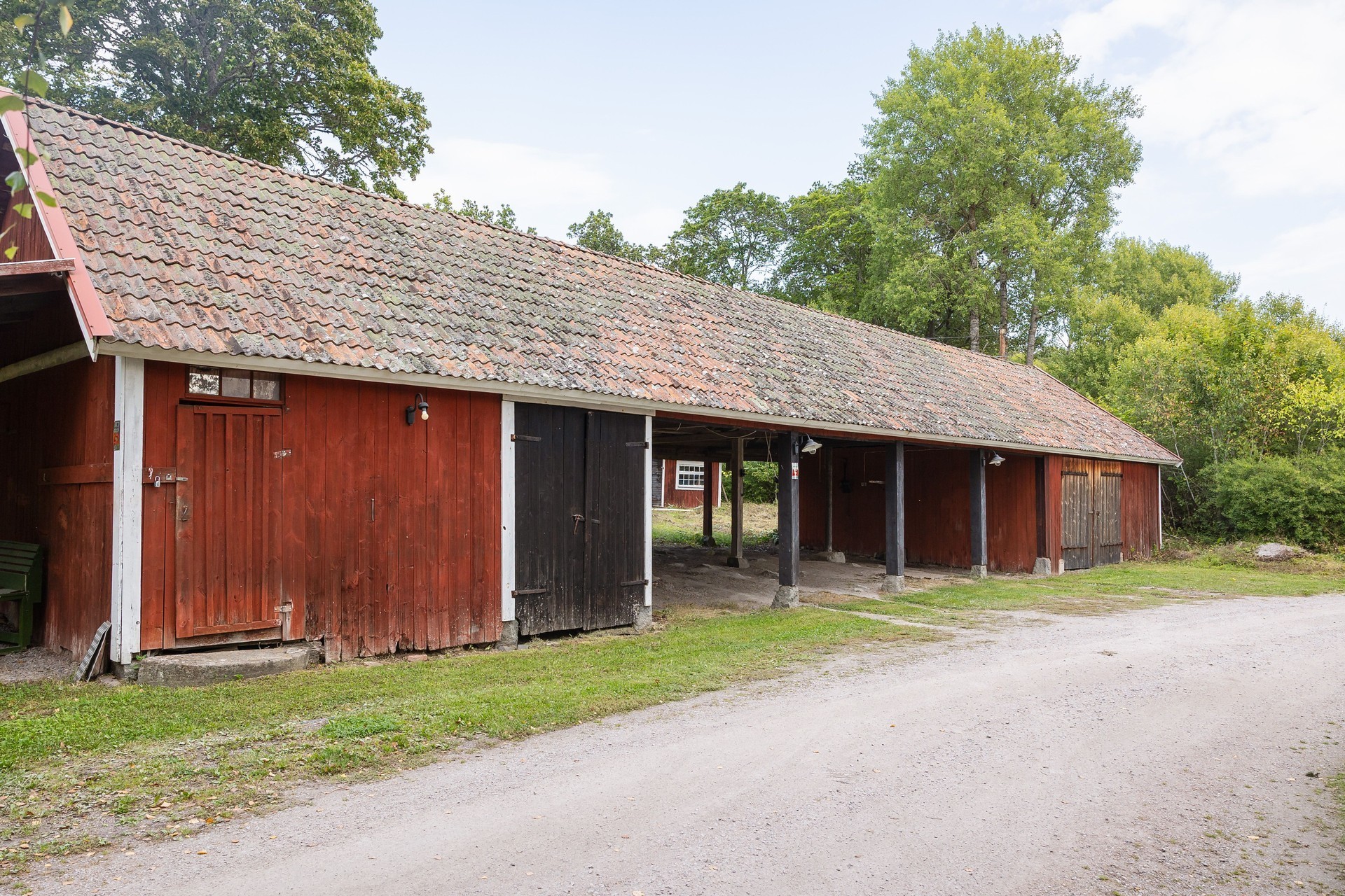 På gården finns flera uthus/ekonomibyggnader. I dagsläget nyttjas dessa främst som förrådsutrymmen men det finns goda möjligheter att omforma dessa till flertalet andra ändamål. Gårdens korsvirkesbyggnad/magasin är enligt uppgift flyttad till gården från Halland år 1912. Byggnaden har det klassiska korsvirkesutseendet med en överbyggnad av trä. Yttertaket är av plåt. Byggnaden har tidigare varigt magasin men nyttjas idag som förråd. Byggnaden är fint underhållen och väl bevarad. Gårdens stenladugård är uppförd runt år 1897. Väggarna på ladugården är av sten/granit med överbyggnad av trä, vilken inrymmer skulle. Yttertaket är av plåt. Invändigt finns äldre träinredning för mjölkkor kvar. Byggnaden är vacker men kräver anpassning för modernt nyttjande. Sammanbyggt med ladugården är en lada, cirka 400 m², med trästomme, träpanel samt plåttak. Invändigt är det trä-/jordgolv. Liderbyggnaden är uppförd med trästomme, träpanel och tegeltak, på baksidan byttes tegeltaket ut år 2010. Byggnaden har tre öppna fack (typ carport) samt två separata förrådsdelar. Gårdens f.d. hönshus är cirka 30 m². Röd träpanel och yttertak av plåt. Detta har senast nyttjats som snickeri för gården.