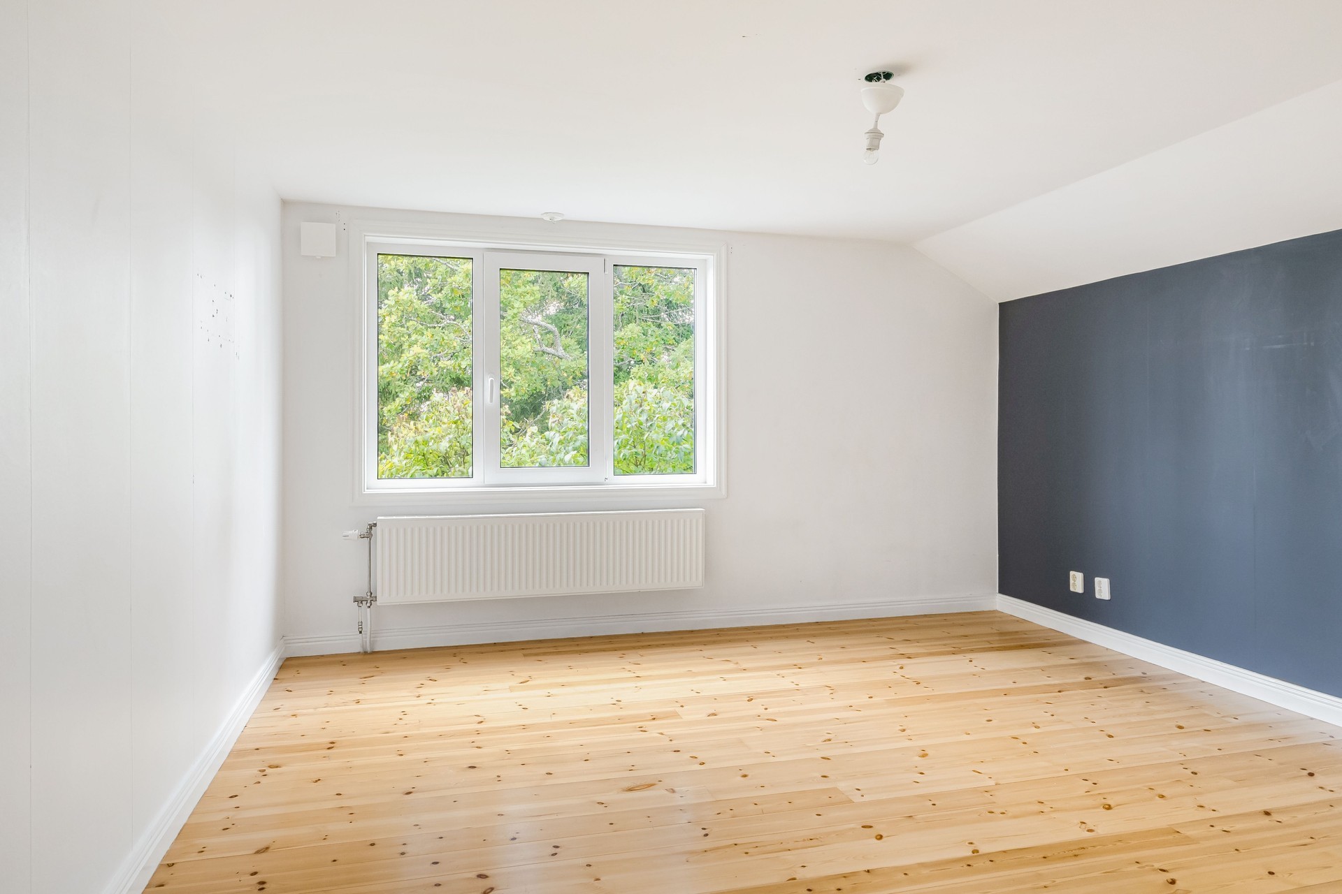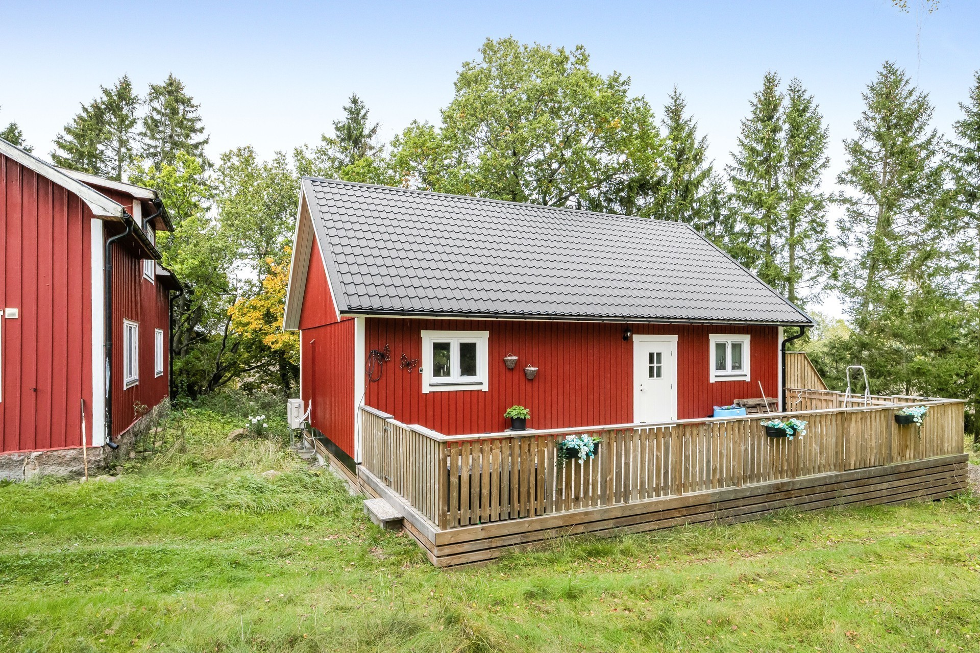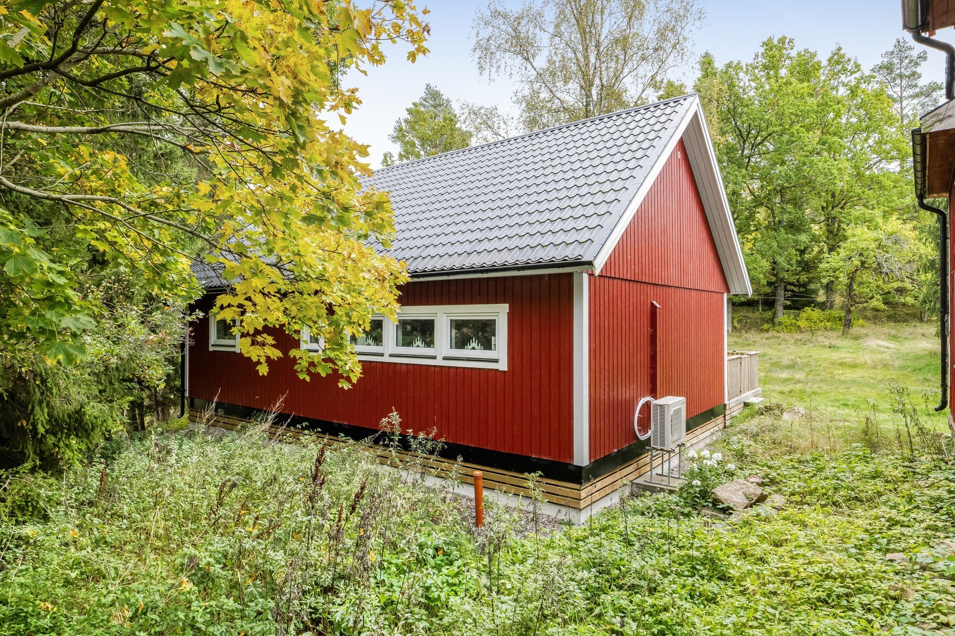 Komplementbyggnaden/sidohuset är uppfört/ombyggt till två bostadslägenheter 2023. Trästomme, träpanel, yttertak av plåt (tegelimitation). Lägenheten nere värms med värmepump luft-luft, badrum och hall har elektriskt golvvärme som komplement. Den övre lägenheten värms med elelement. Vatten och avlopp är gemensamt med stora bostadshuset. Modern standard på alla delar. Hela huset är i ett fint skick. Huset är uppfört som komplementbyggnad/övernattningsboende och inte som permanentbostad. Nedre lägenheten: Hela bottenvåningen är inredd till en lägenhet, cirka 70 m² boarea fördelat på två sovrum samt öppet kök/vardagsrum. Planlösningen är både praktisk och trevlig. Köket är utrustat med spishäll, ugn, kyl, frys och diskmaskin. Badrummet är modernt och välplanerat. Klinkergolv, helkaklade väggar, dusch och tvättmaskin. Lägenheten har en egen uteplats/altan med avskilt söderläge. Övre lägenheten: Cirka 50 m² golvyta, dock stor del snedtak så boarean blir mindre. Ett öppet rum med hall, vardagsrum, kök och sovalkov i ett. Köket har bra utrustningsnivå. Fint och rymligt badrum med klinkergolv, helkaklade väggar och elektrisk golvvärme. En praktiskt planerad lägenhet lämplig för en person. Huset ligger med möjlighet till egen infart.