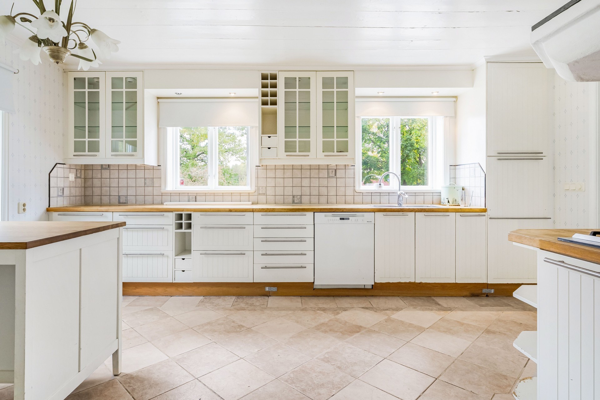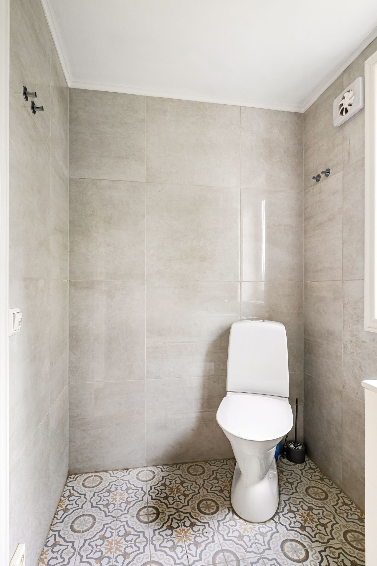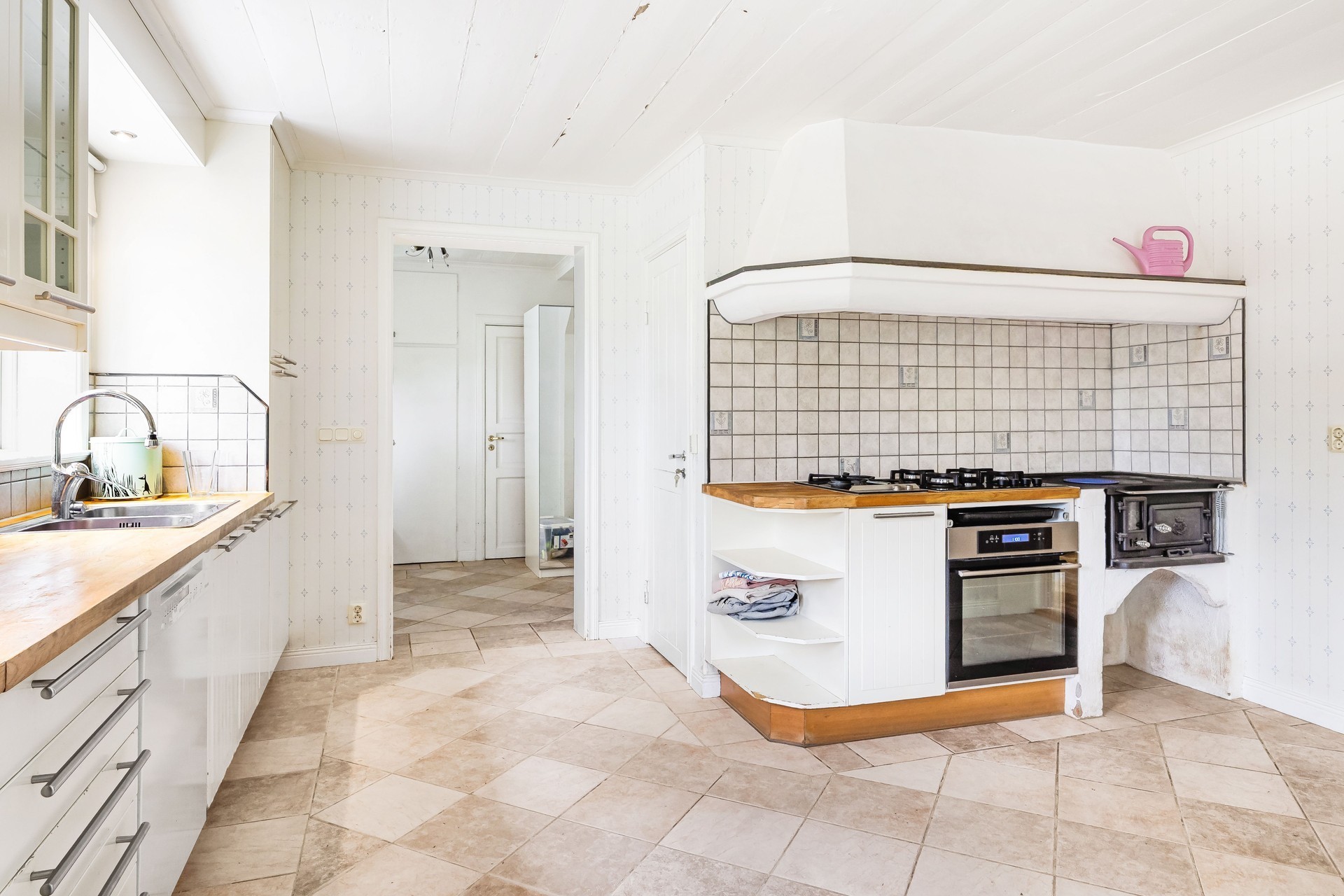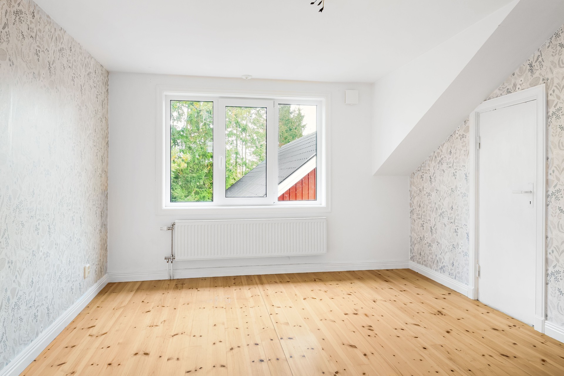 Komplementbyggnaden/sidohuset är uppfört/ombyggt till två bostadslägenheter 2023. Trästomme, träpanel, yttertak av plåt (tegelimitation). Lägenheten nere värms med värmepump luft-luft, badrum och hall har elektriskt golvvärme som komplement. Den övre lägenheten värms med elelement. Vatten och avlopp är gemensamt med stora bostadshuset. Modern standard på alla delar. Hela huset är i ett fint skick. Huset är uppfört som komplementbyggnad/övernattningsboende och inte som permanentbostad. Nedre lägenheten: Hela bottenvåningen är inredd till en lägenhet, cirka 70 m² boarea fördelat på två sovrum samt öppet kök/vardagsrum. Planlösningen är både praktisk och trevlig. Köket är utrustat med spishäll, ugn, kyl, frys och diskmaskin. Badrummet är modernt och välplanerat. Klinkergolv, helkaklade väggar, dusch och tvättmaskin. Lägenheten har en egen uteplats/altan med avskilt söderläge. Övre lägenheten: Cirka 50 m² golvyta, dock stor del snedtak så boarean blir mindre. Ett öppet rum med hall, vardagsrum, kök och sovalkov i ett. Köket har bra utrustningsnivå. Fint och rymligt badrum med klinkergolv, helkaklade väggar och elektrisk golvvärme. En praktiskt planerad lägenhet lämplig för en person. Huset ligger med möjlighet till egen infart.
