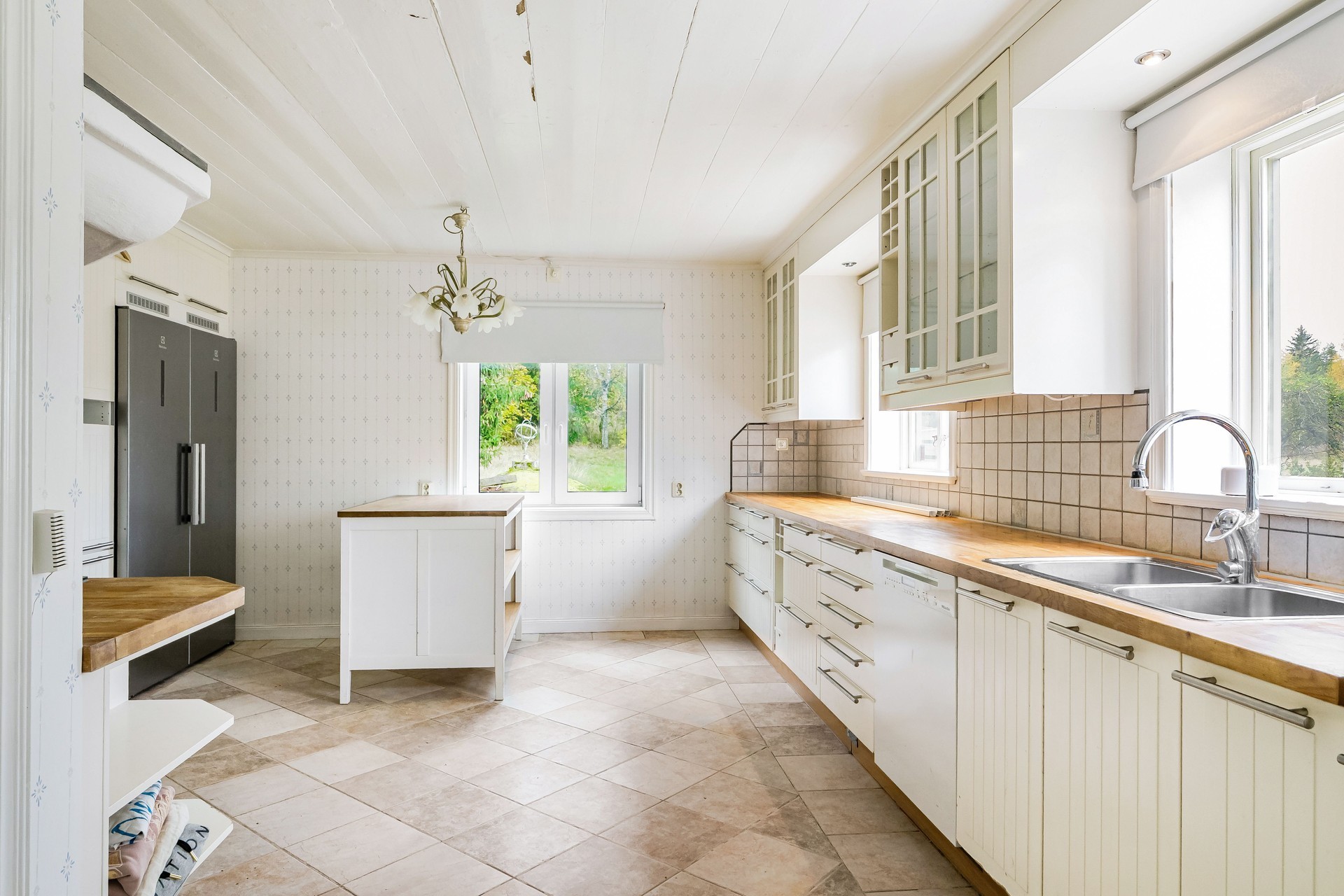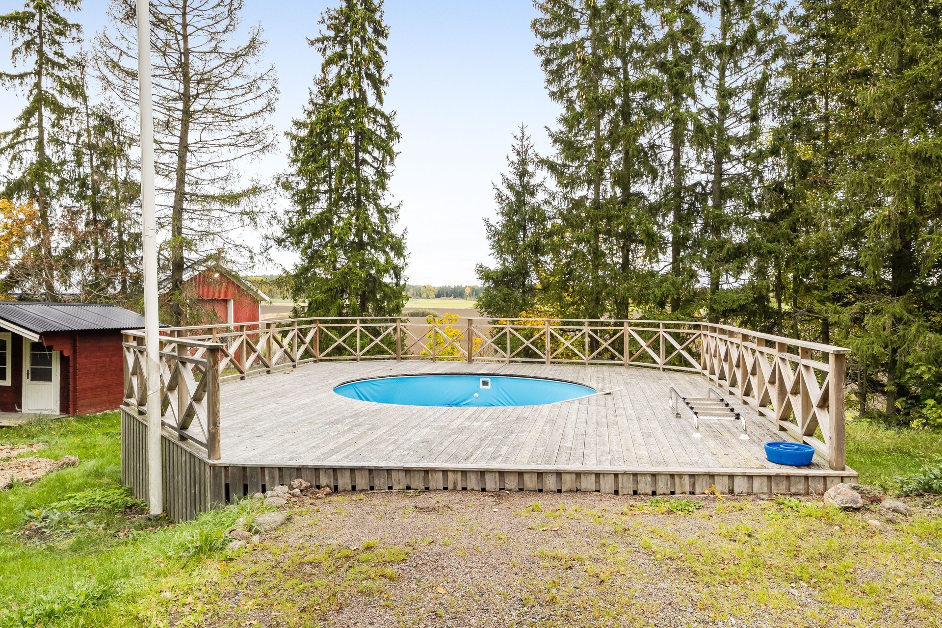 Bostaden är ursprungligen ett äldre hus som troligen flyttats till dess nuvarande plats. Bostaden har en trästomme (troligen timmer), träpanel och betongtegeltak. Huset har vattenburen värme som värms med en elpanna. Detta kompletteras med braskamin och vedspis. Det vattenburna värmesystemet gör att man har stora möjligheter till alternativa värmekällor. Bostaden genomgick en omfattande renovering 2003. Då byttes det mesta av elen i bostaden. År 2023 renoverades de flesta ytskikt och merparten av fönstren byttes ut till moderna fönster med bra energivärde. Bostaden är i mycket gott skick. Till stora huset hör en trevlig tomt med pool med stort altandäck.