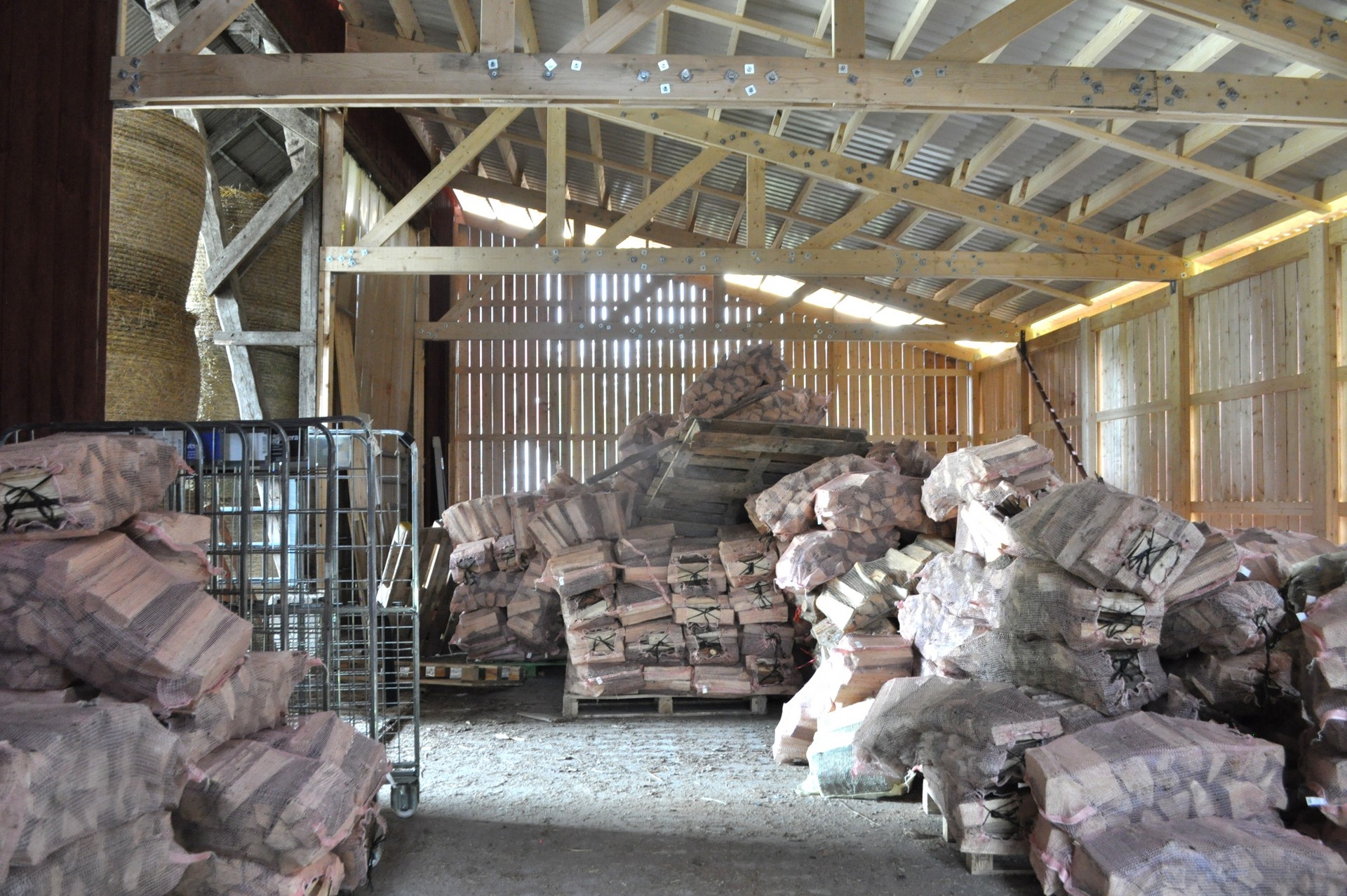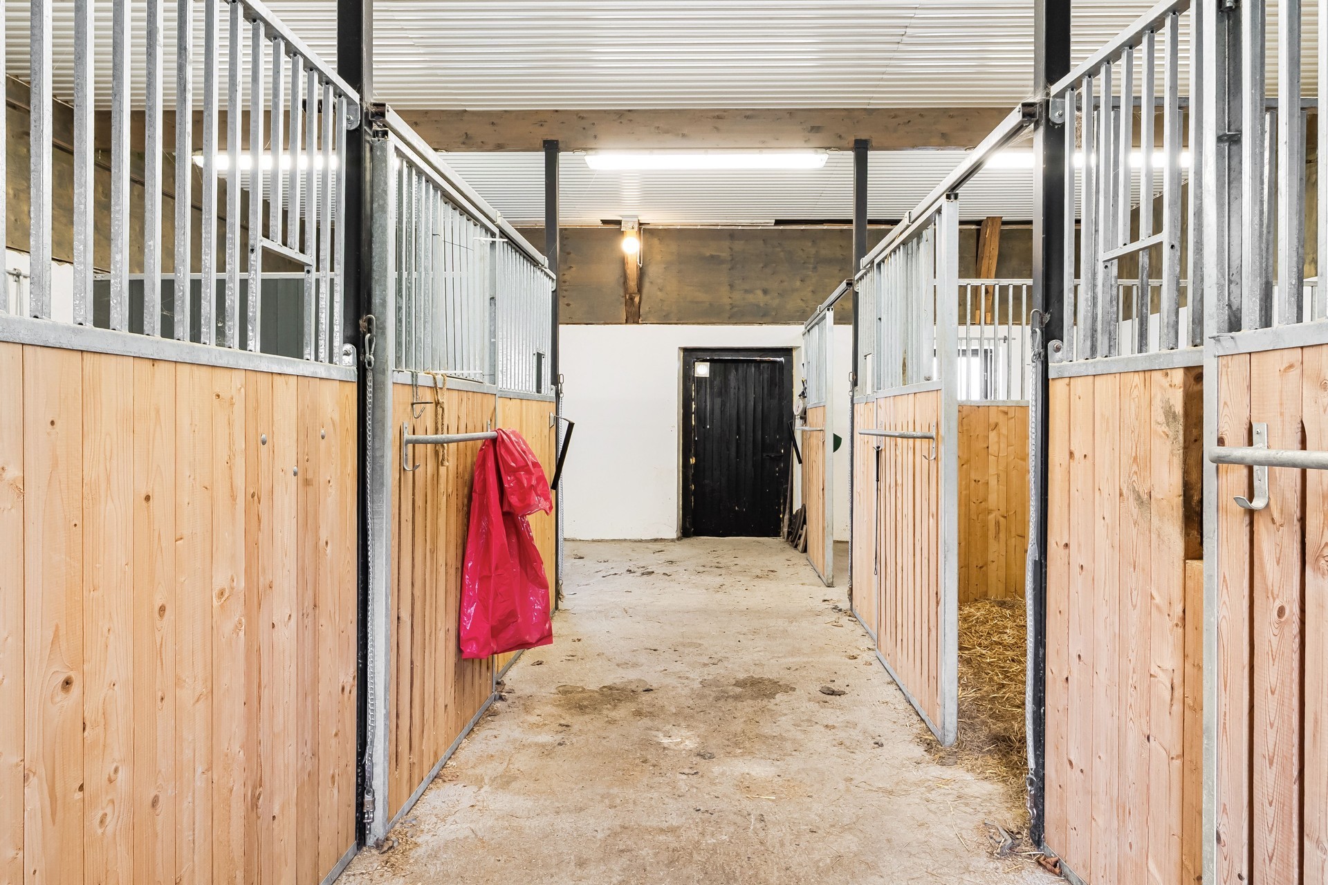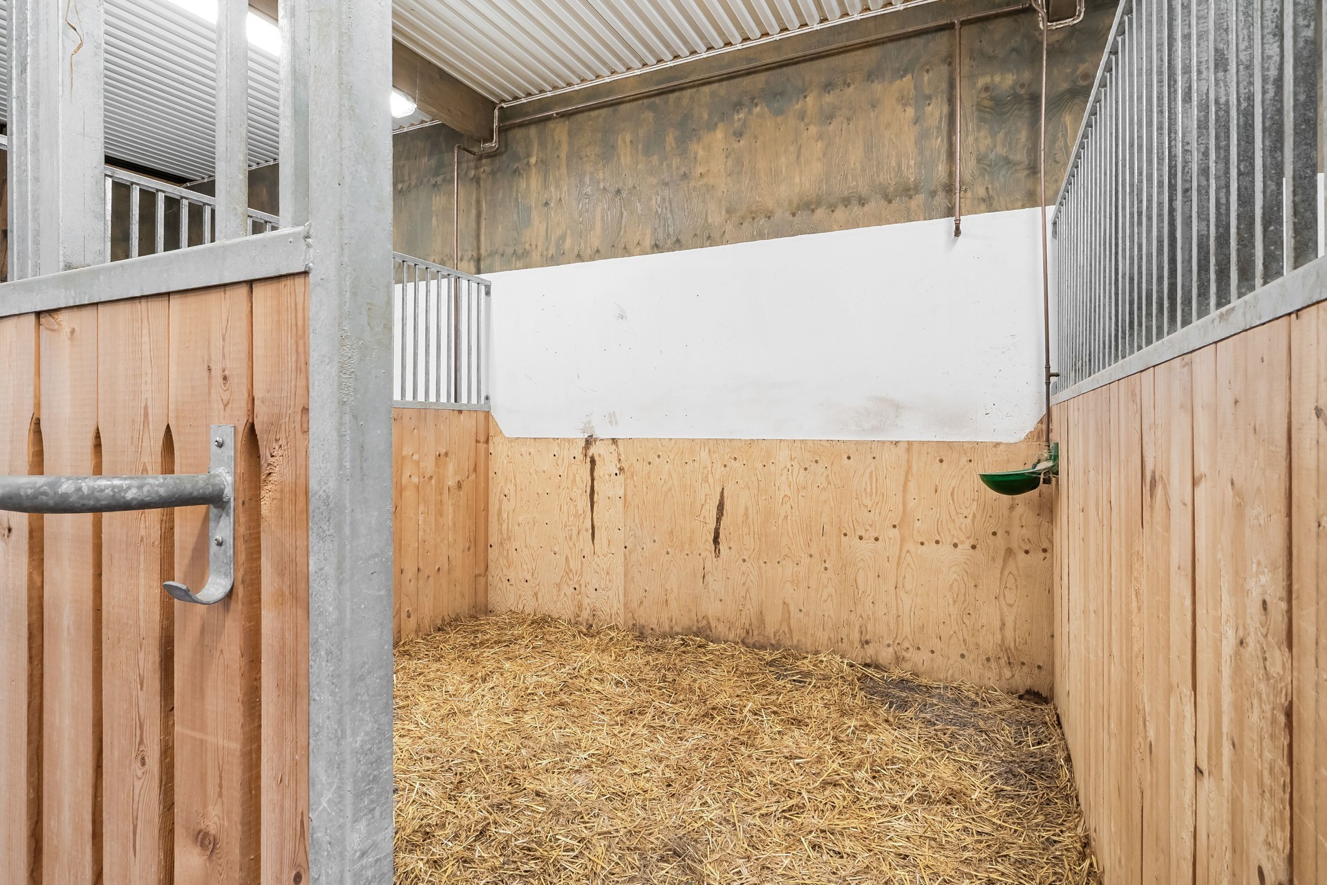 Större delen av gårdens f.d. ladugård är ombyggd till ett fint häststall med fyra boxar, varav en är dubbelbox som kan delas på två. Dessutom finns en rymlig spolspilta. Stallet är totalt cirka 80 m². Då innertaket är upphöjt är den invändiga takhöjden 3,3 meter. Den f.d. ladugården är uppförd med murade väggar och överbyggnad av trä. Den del av ladugården som inte är ombyggd, cirka 55 m², har fortfarande äldre inredning för kor. Denna del nyttjas idag som förråd men kan enkelt anpassas för annat nyttjande. Ladan är drygt 210 m², fribärande trästomme och träpanel. Ladan har ett bra betonggolv. Bakom ladan är en maskinhall/ligghall för djur uppförd. Denna är knappt 100 m², med betonggolv, trästomme, träpanel och plåttak. Alla ekonomibyggnader på gården är i ett bra skick.